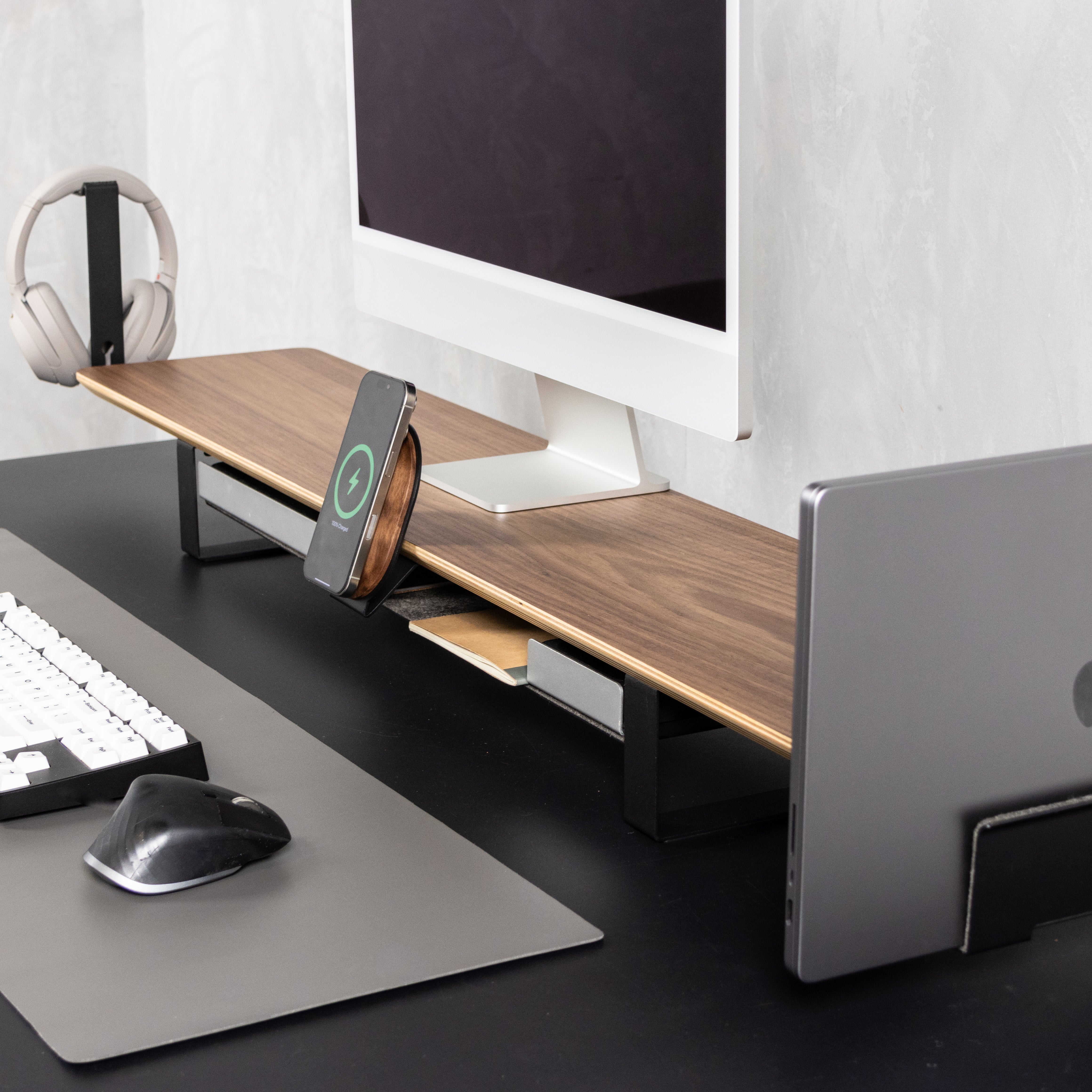 Discover the freedom to customize your desk shelf with our modular accessories — from laptop stands to phone mounts and trays